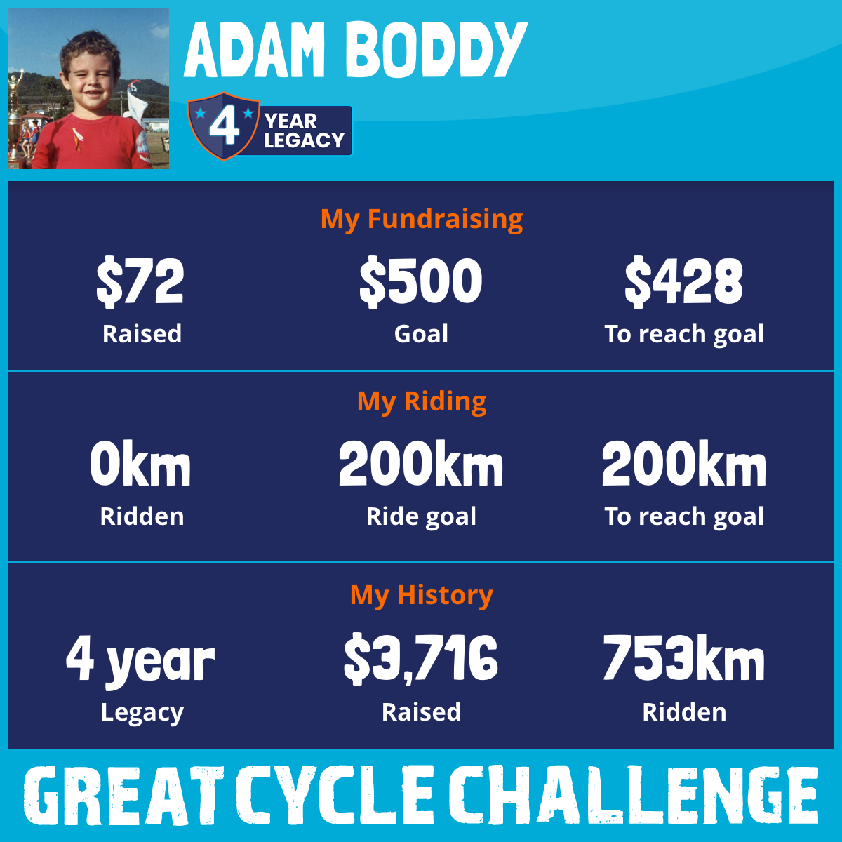 And so I am riding and raising funds to support the Children's Medical Research Institute to continue their work into the prevention, diagnosis, treatment and finding a cure for childhood cancer.