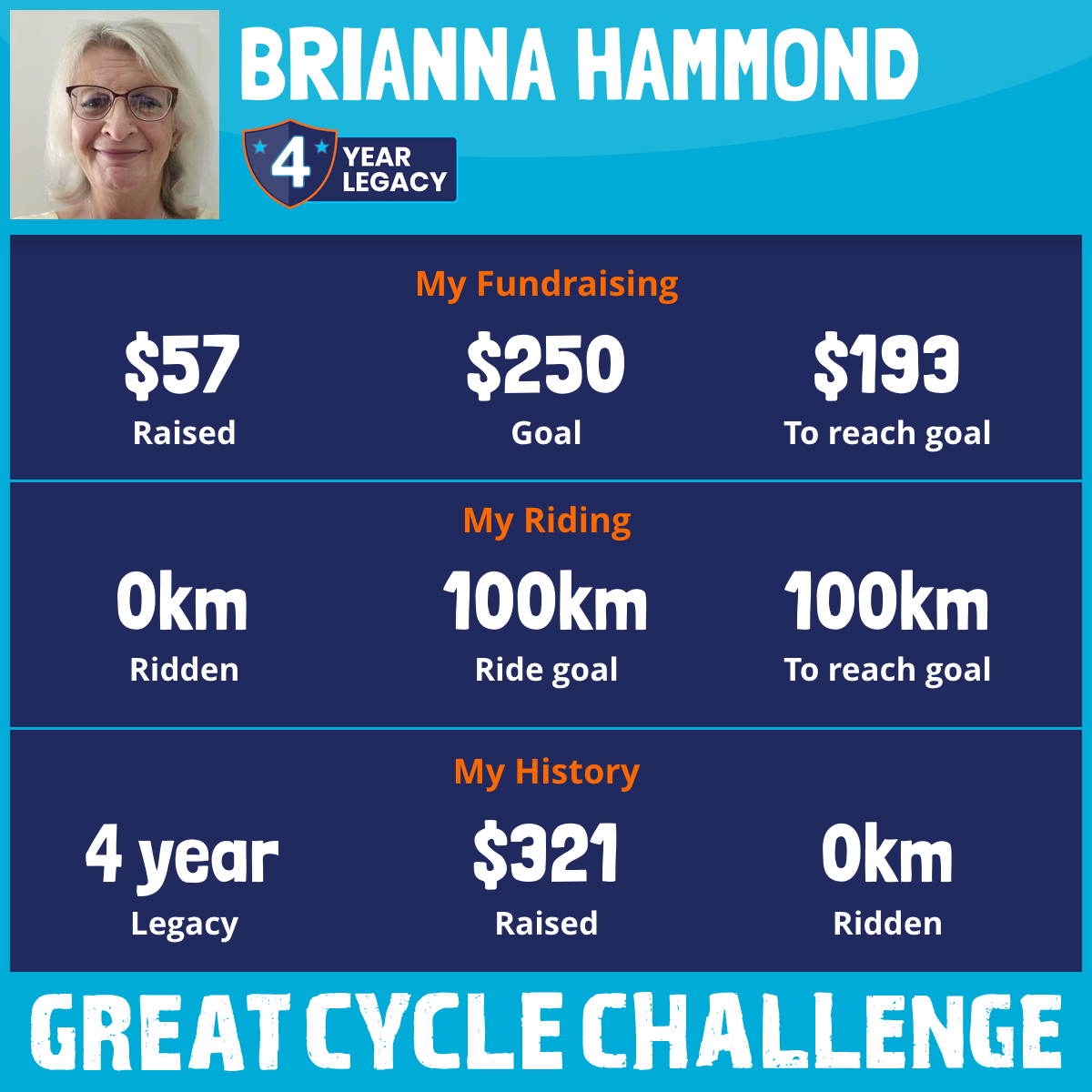 And so I am riding and raising funds to support the Children's Medical Research Institute to continue their work into the prevention, diagnosis, treatment and finding a cure for childhood cancer.