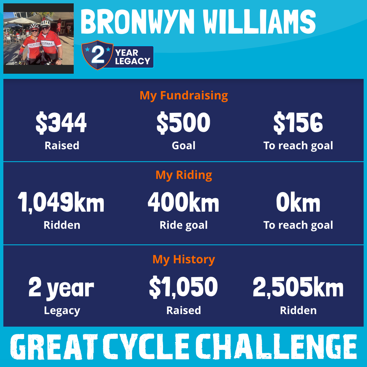 And so I am riding and raising funds to support the Children's Medical Research Institute to continue their work into the prevention, diagnosis, treatment and finding a cure for childhood cancer.