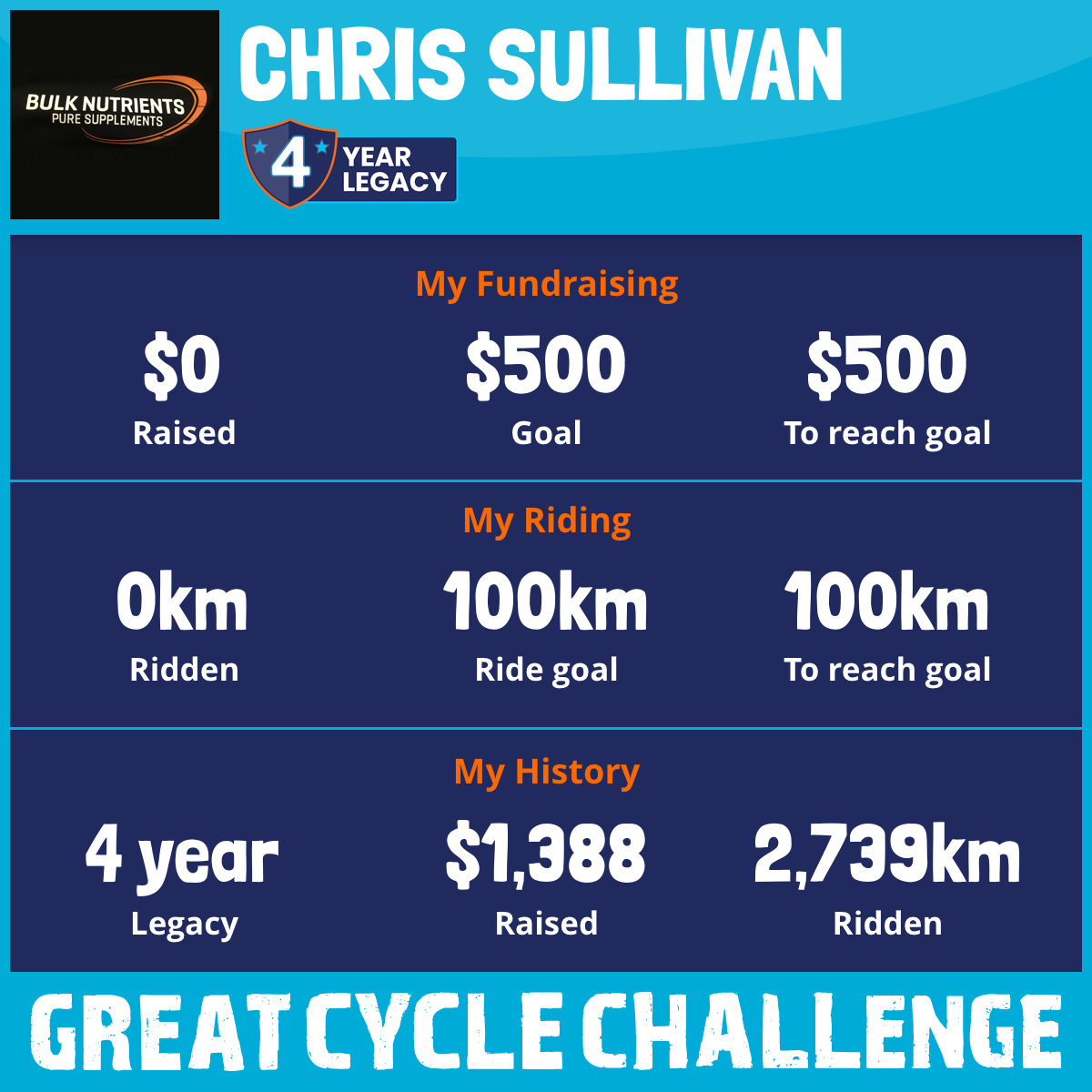 1,326 km Ridden$1,388 Raised2019