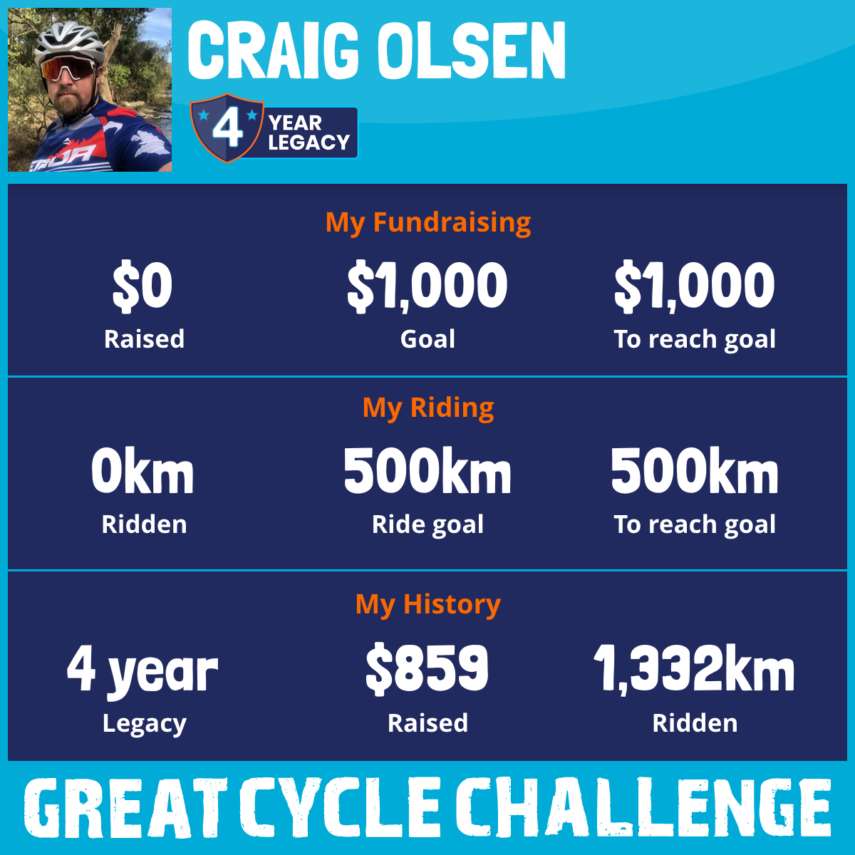 October is the month I try to help make a difference for kids battling with cancer in Australia. My goal is to ride at least 500kms (I want to try and hit 750kms) and raise at least $1000.00 for this awesome cause. $2000.00 would be even better! This will be my 4th year taking part in this.