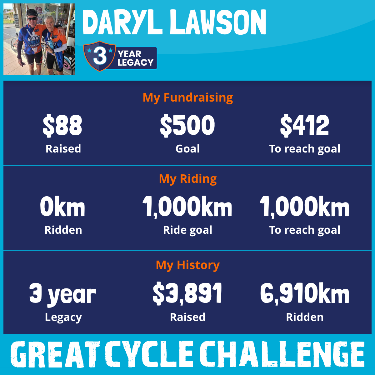 3,585 km Ridden$2,267 Raised2023