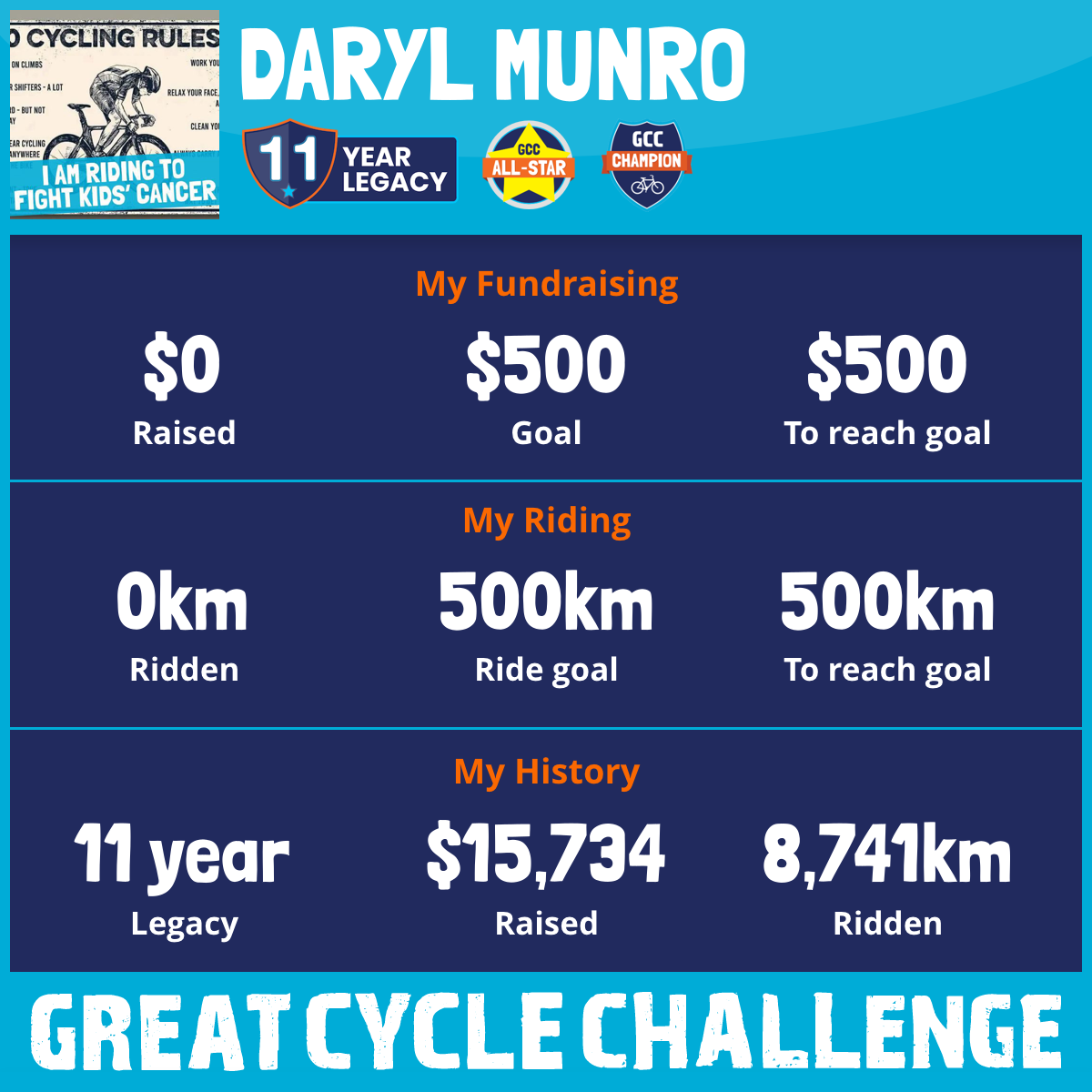 And so I am riding and raising funds to support the Children's Medical Research Institute to continue their work into the prevention, diagnosis, treatment and finding a cure for childhood cancer.