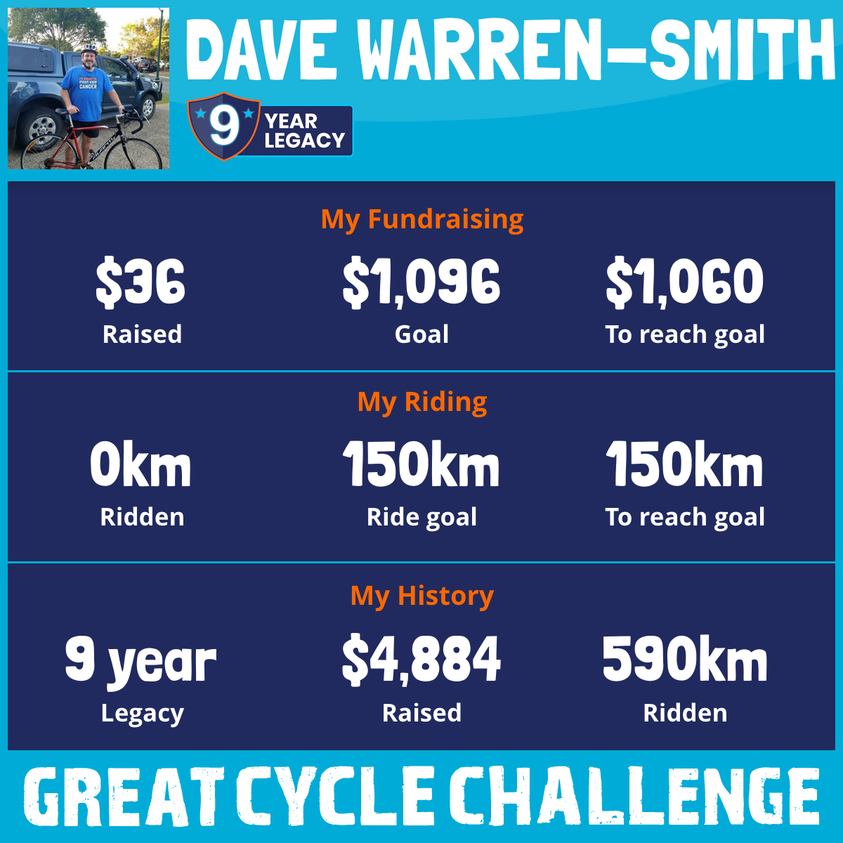 150 km Ridden$1,196 Raised2025