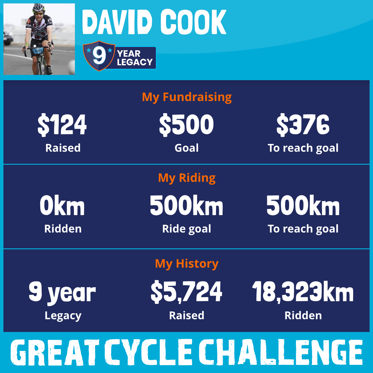 1,188 km Ridden$1,110 Raised2017
