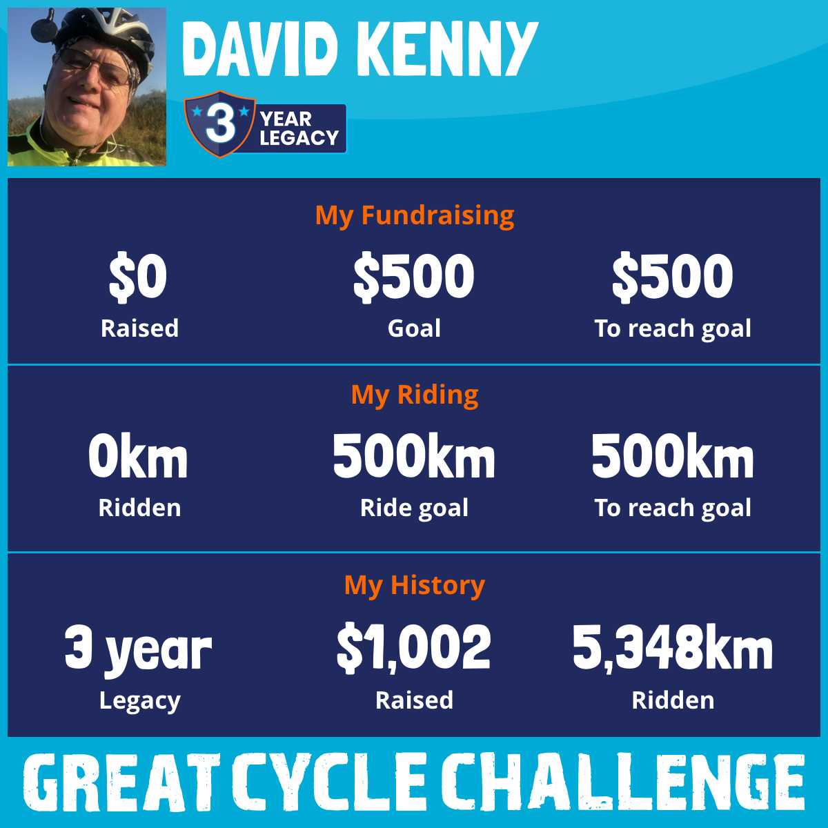 I am riding 500 km in memory of Micheal Kenny. Please sponsor me and support my challenge to fight kids' cancer and save little lives.