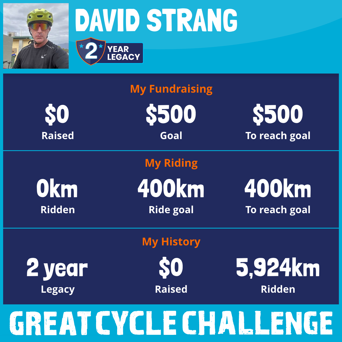 I am riding 500km in memory of my dad, Tony Strang and George McNees. Please sponsor me and support my challenge to fight kids' cancer and save little lives.