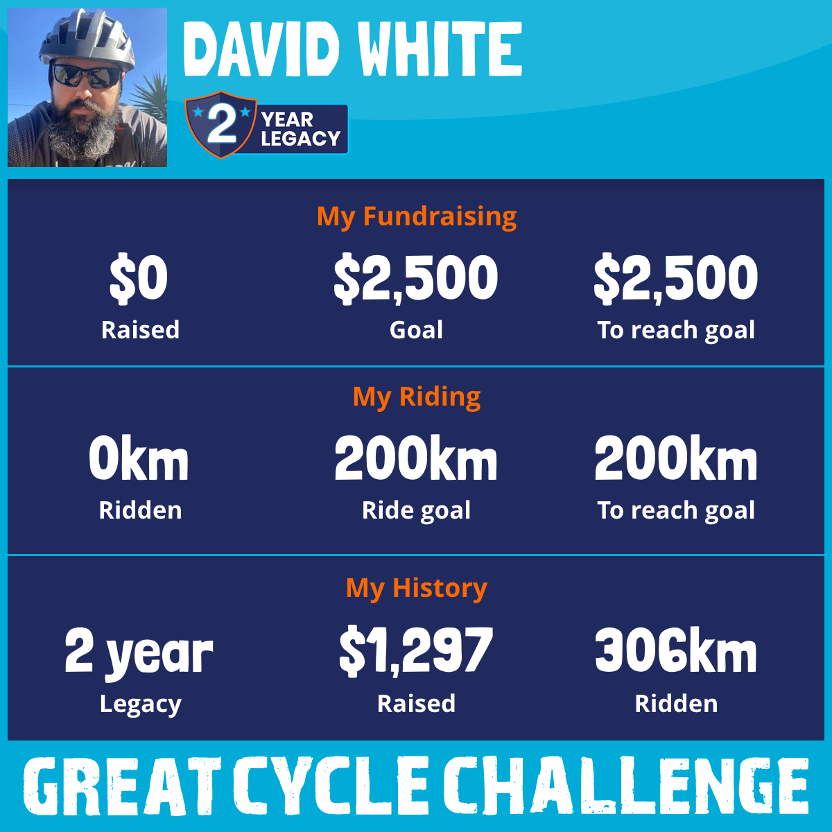 306 km Ridden$1,297 Raised2020