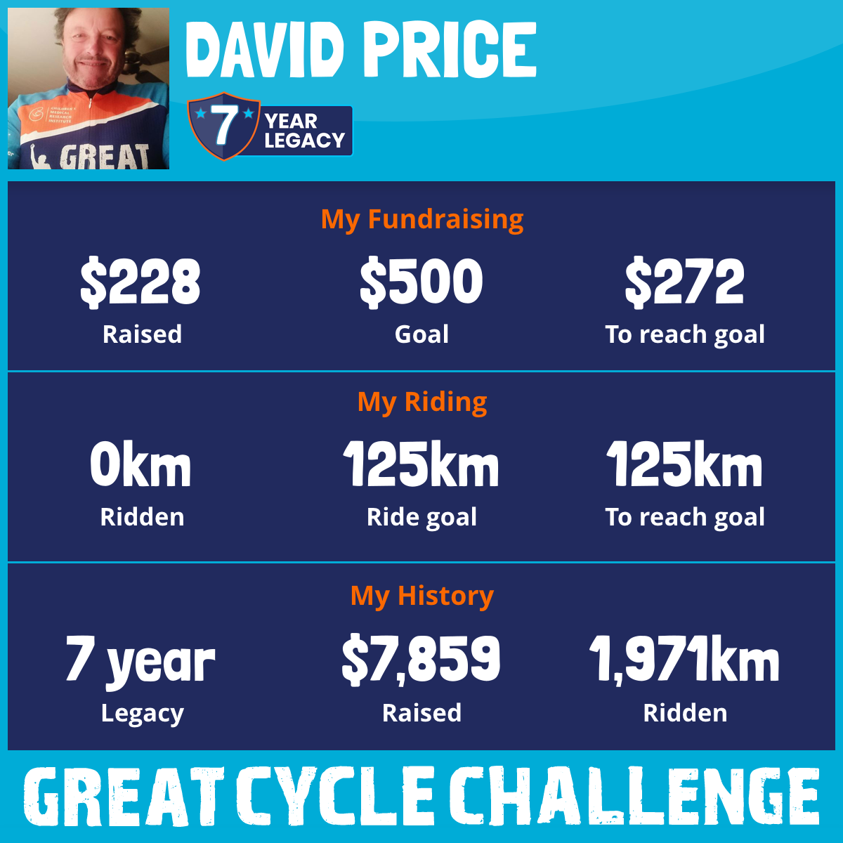 9.1 km ride - Today’s ride achieved my Great Cycle Challenge goal of 125kms to raise awareness and fight... - Friday, October 24, 2025
