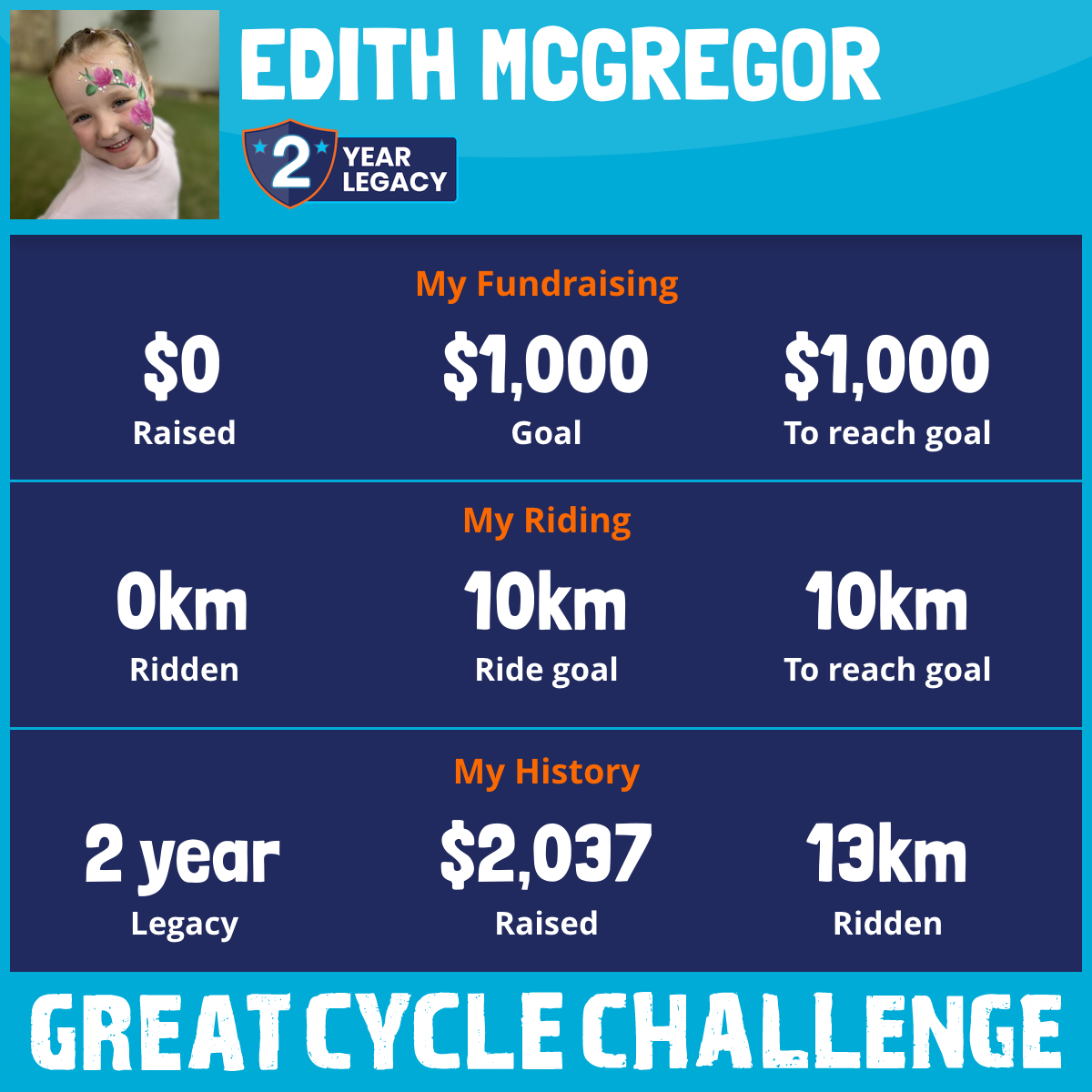And so I am riding and raising funds to support the Children's Medical Research Institute to continue their work into the prevention, diagnosis, treatment and finding a cure for childhood cancer.