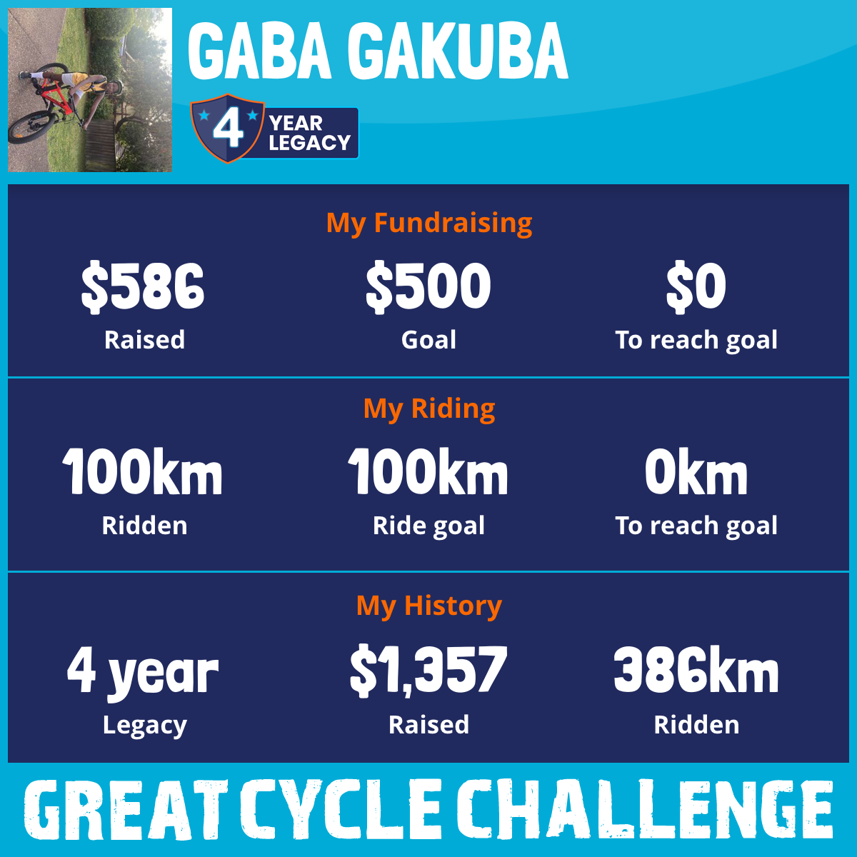 100 km Ridden$586 Raised2025