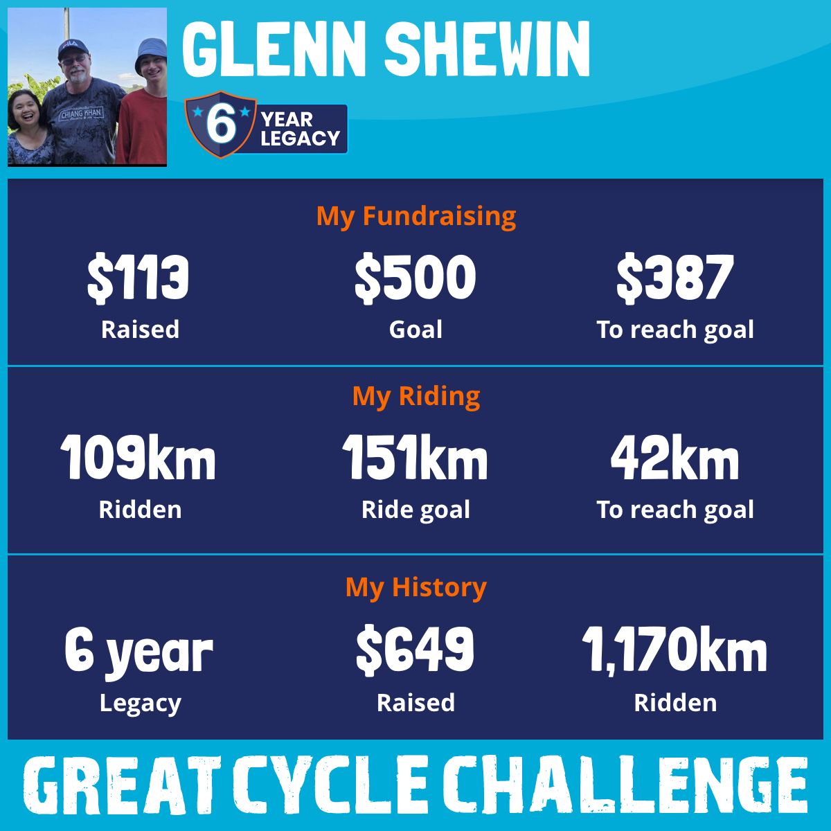 I am riding 151 km in memory of Trevor Shewin. Please sponsor me and support my challenge to fight kids' cancer and save little lives.