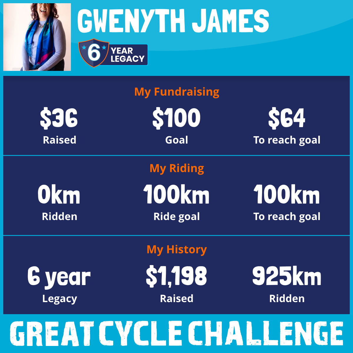 My Mother, Eileen James, died on pancreatic cancer in August 2016. She was 83 years. I ride to raise money for research into kids' cancer because nobody should suffer as she did.