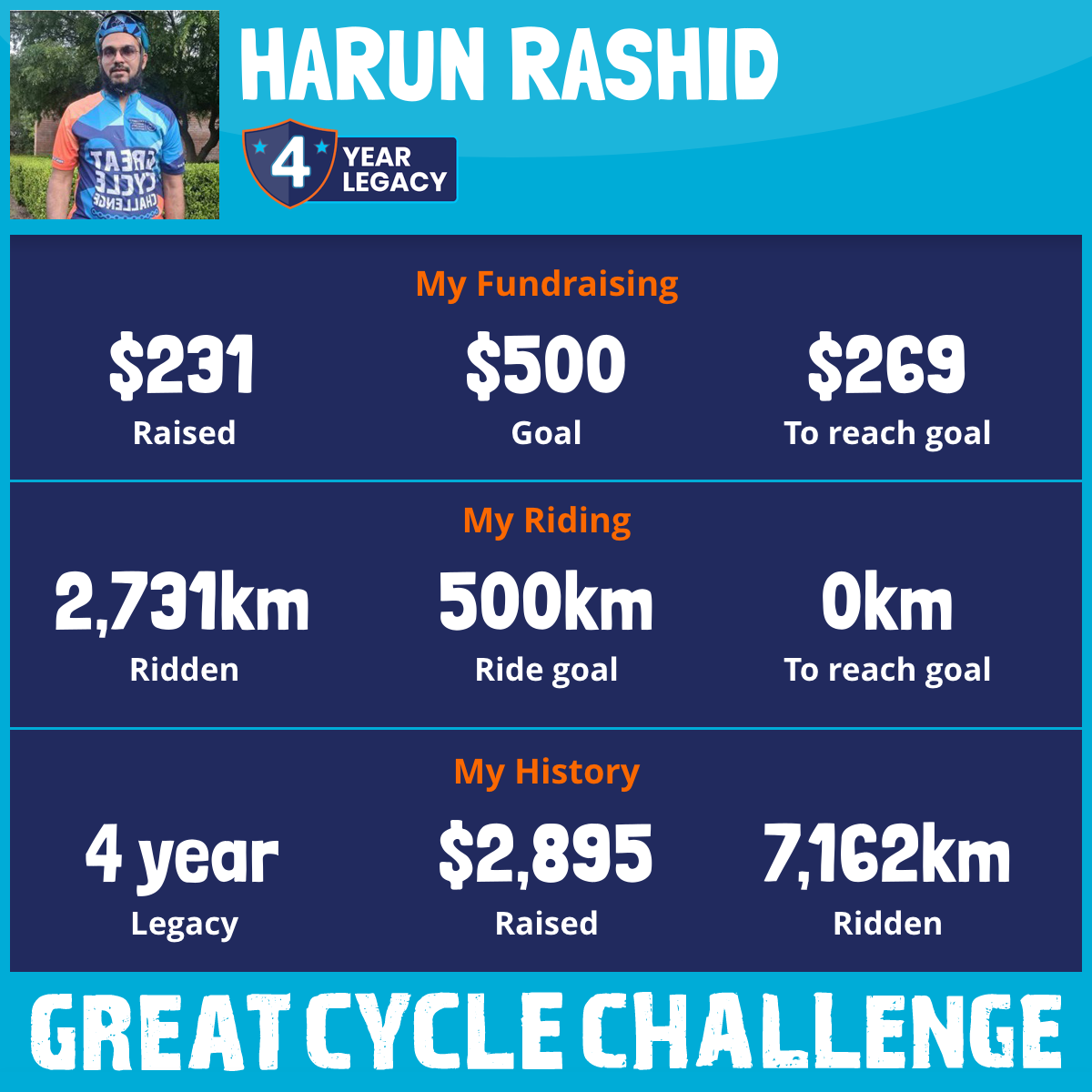 2,731 km Ridden$231 Raised2025