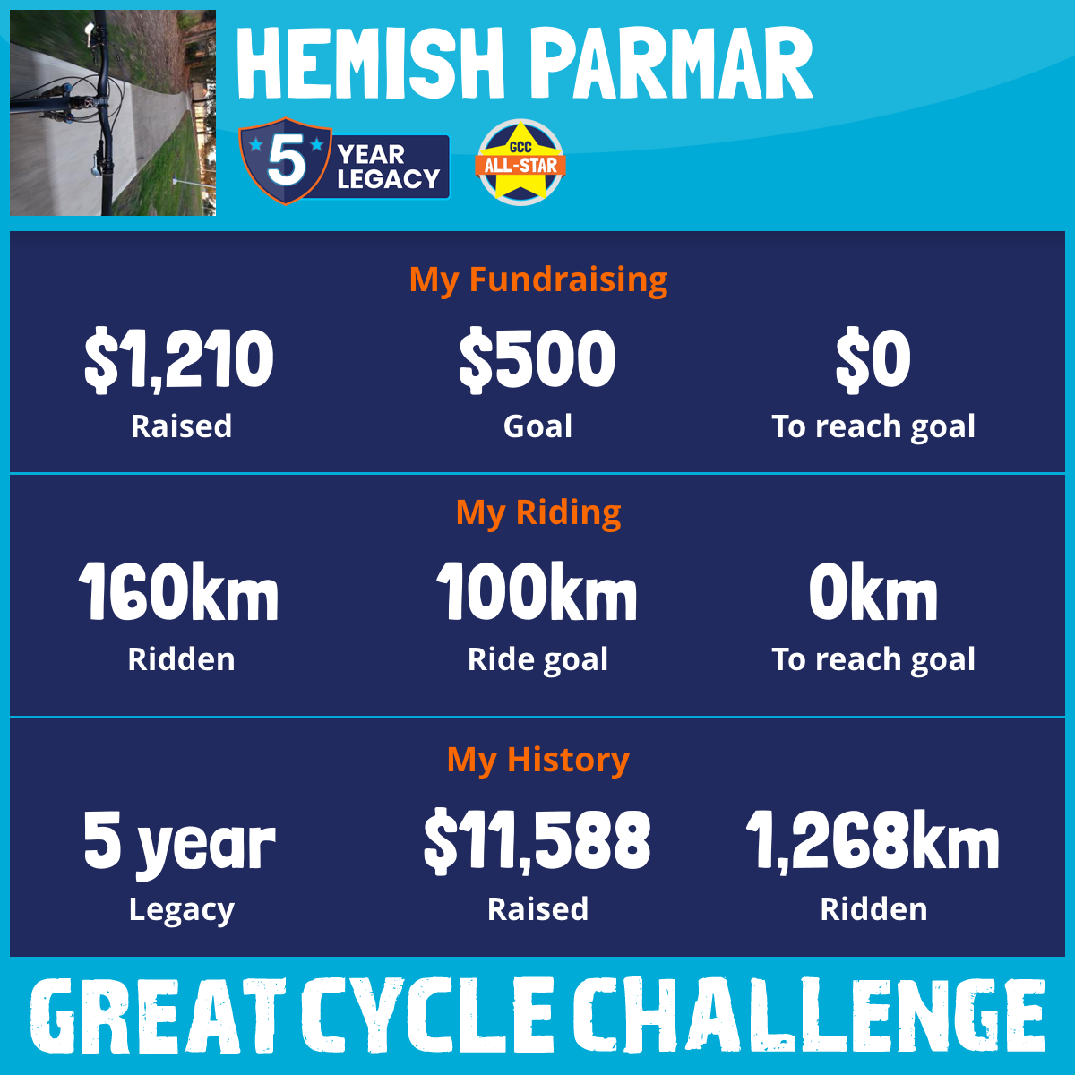 And so I am riding and raising funds to support the Children's Medical Research Institute to continue their work into the prevention, diagnosis, treatment and finding a cure for childhood cancer.