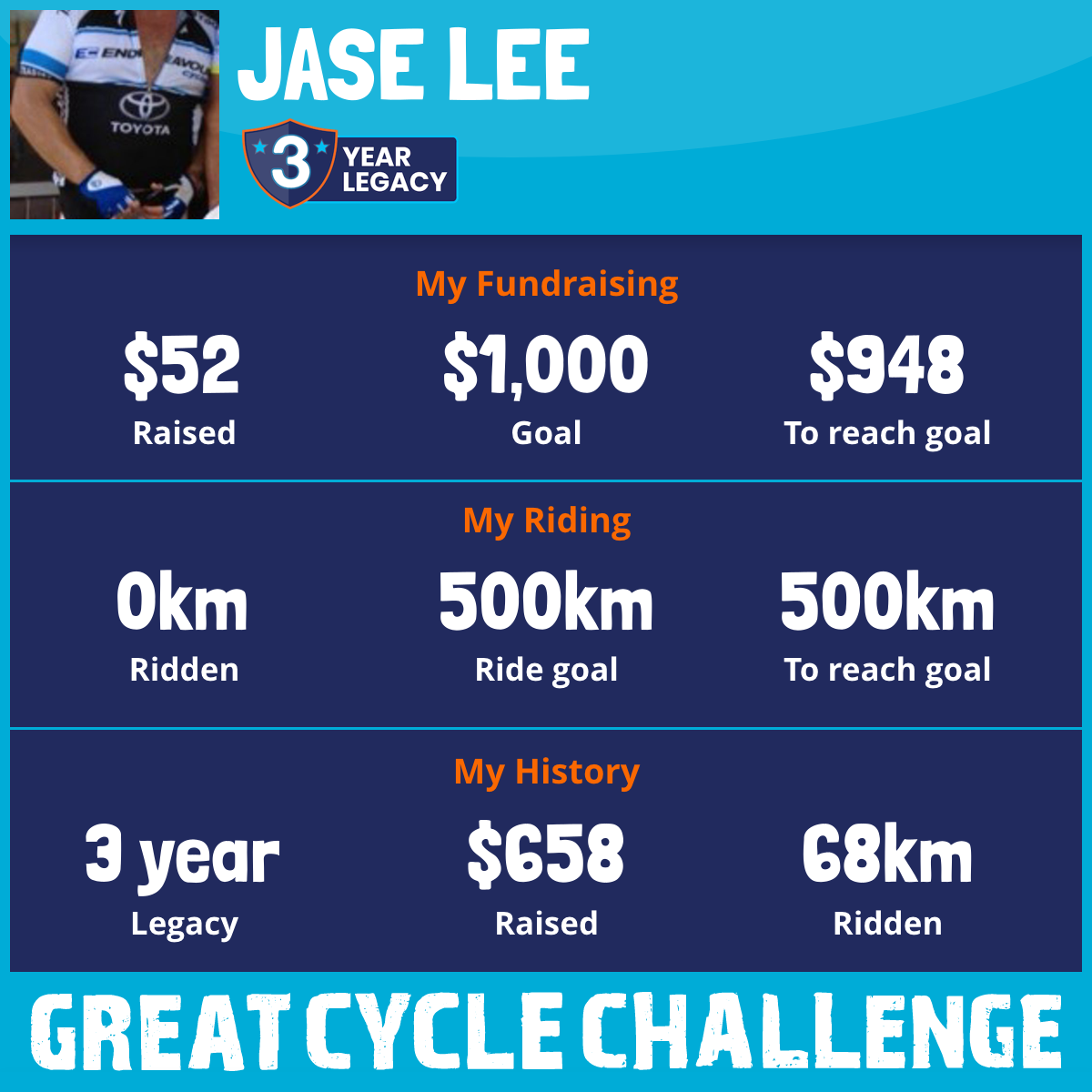30 Jul 2025Hey everyone, I'm riding again this year to raise money for childhood cancer. If you'd like to put a little something towards helping kids become free of cancer, that would be great!