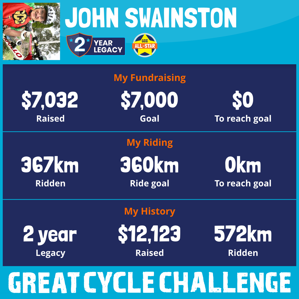 And so, I have been riding and raising funds to support the Children's Medical Research Institute to continue their work into the prevention, diagnosis, treatment and finding a cure for childhood cancer. I rode 366km of my 360km goal and raised over $7,000, , more than 7X my original target of $1,000. That, my friends, is thanks to supporters and donors like you.