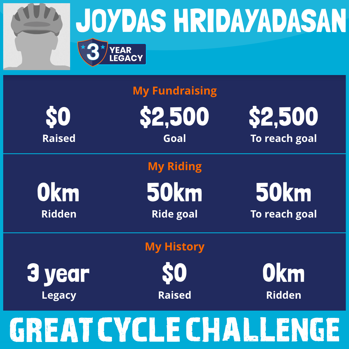 I am riding 50 km in memory of Joy. Please sponsor me and support my challenge to fight kids' cancer and save little lives.