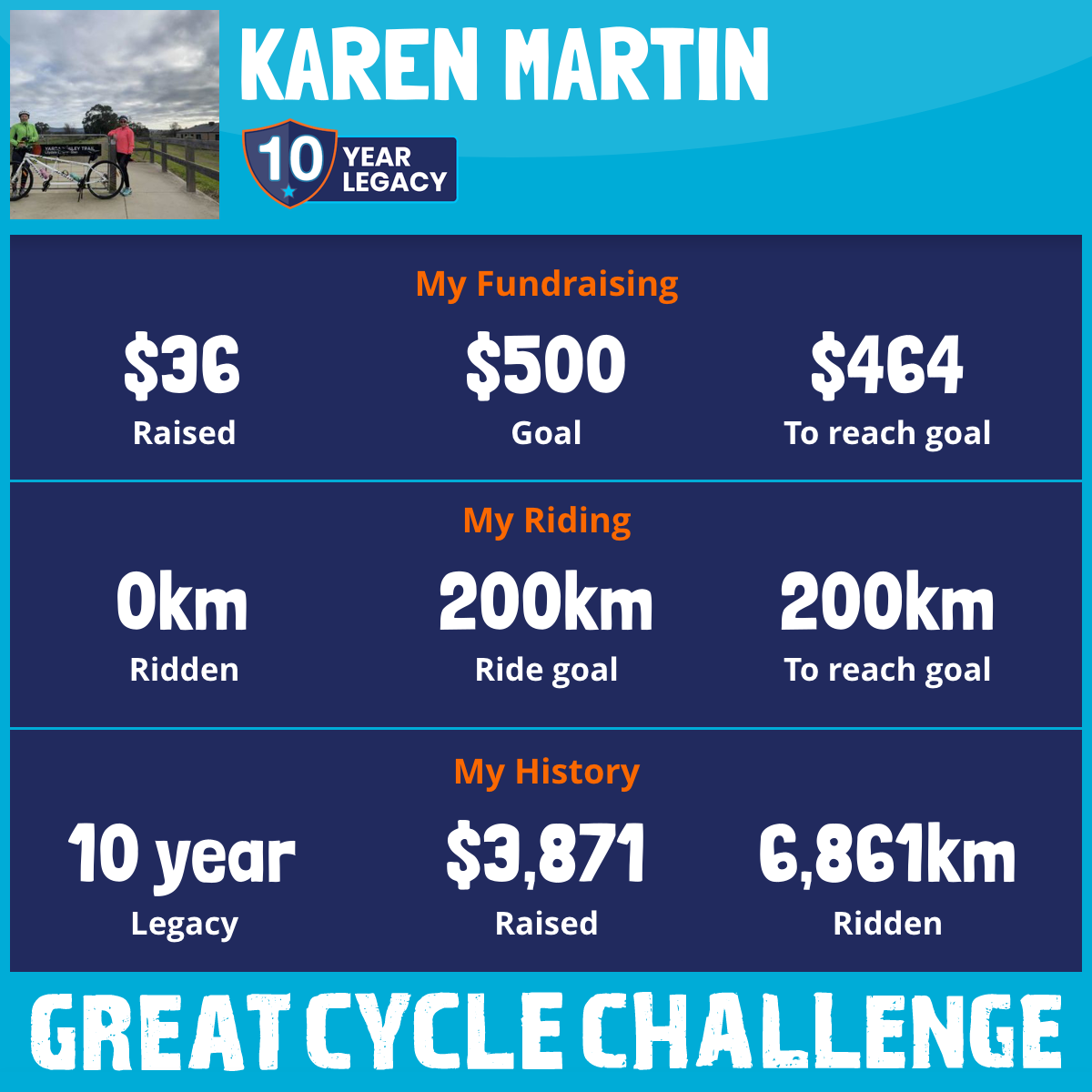 I am riding 200 km for my sister, Sue. Please sponsor me and support my challenge to fight kids' cancer and save little lives.