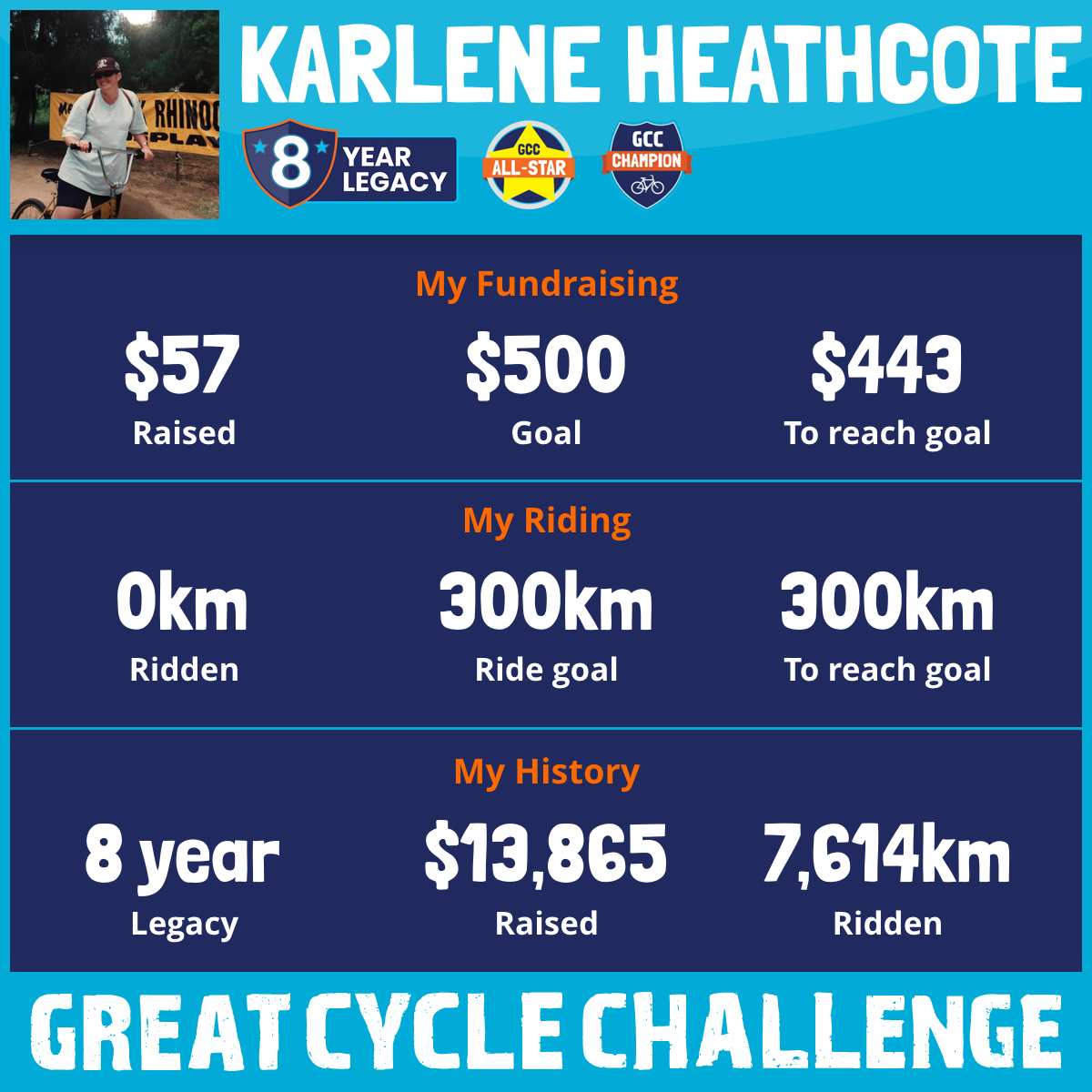 984 km Ridden$2,503 Raised2025