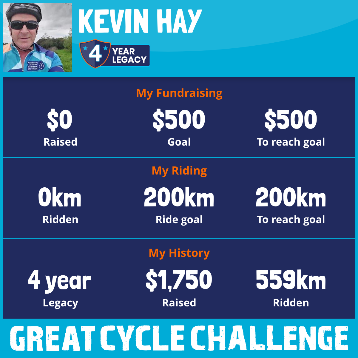 And so I am riding and raising funds to support the Children's Medical Research Institute to continue their work into the prevention, diagnosis, treatment and finding a cure for childhood cancer.
