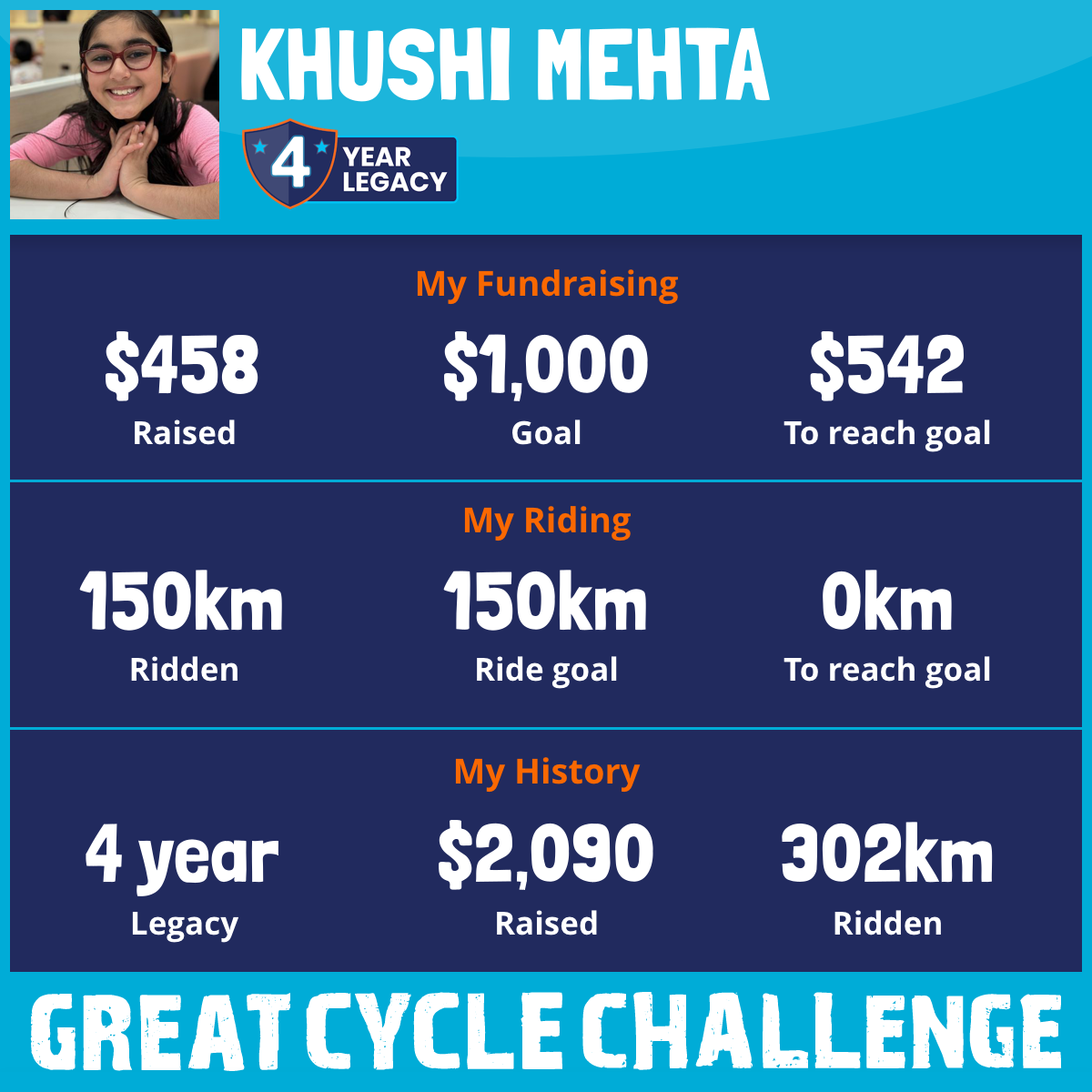 And so I am riding and raising funds to support the Children's Medical Research Institute to continue their work into the prevention, diagnosis, treatment and finding a cure for childhood cancer.