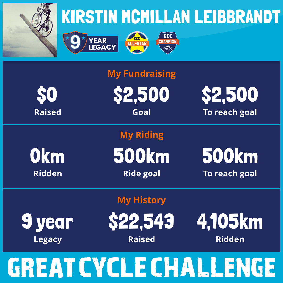 494 km Ridden$7,265 Raised2025