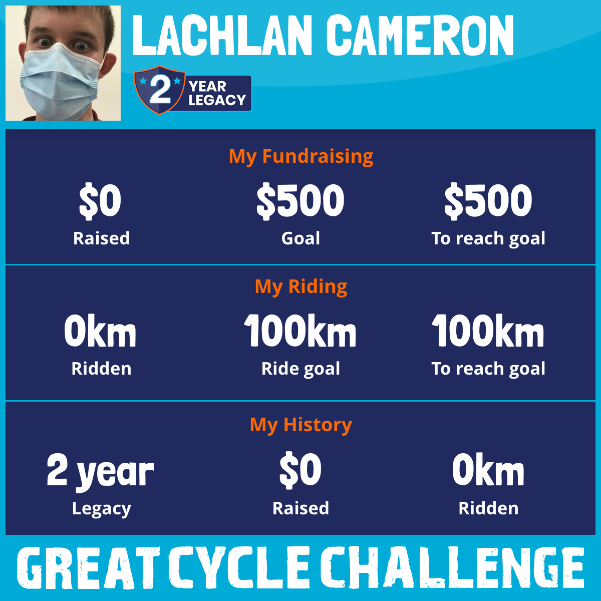 I am riding 100 km in memory of James Mcmurray. Please sponsor me and support my challenge to fight kids' cancer and save little lives.