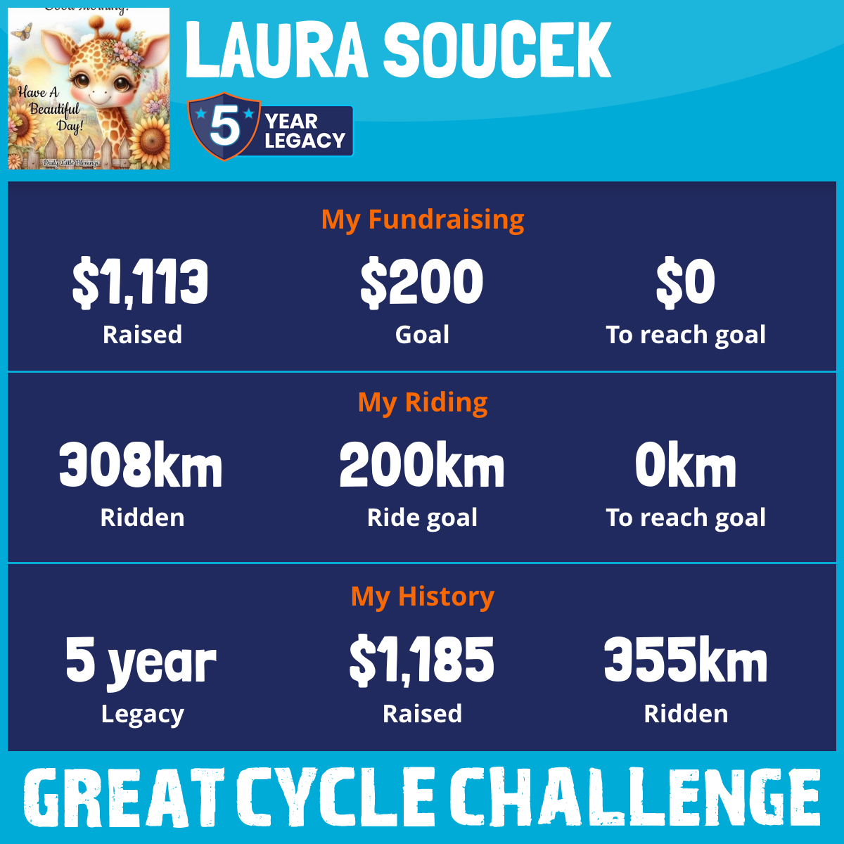 308 km Ridden$1,113 Raised2025