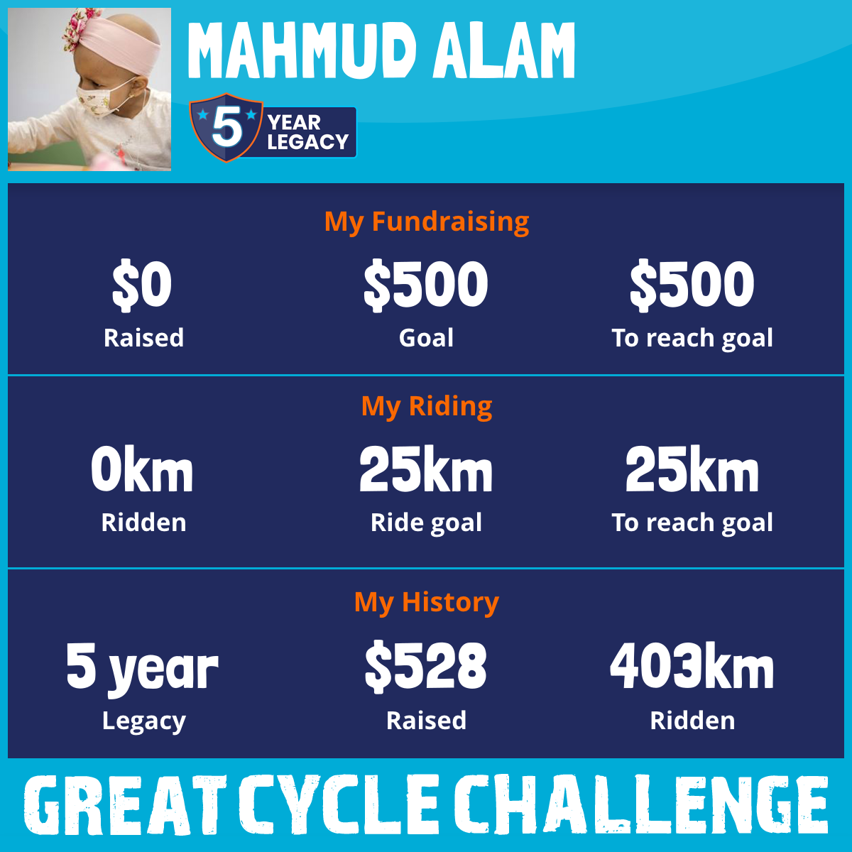 And so I am riding and raising funds to support the Children's Medical Research Institute to continue their work into the prevention, diagnosis, treatment and finding a cure for childhood cancer.