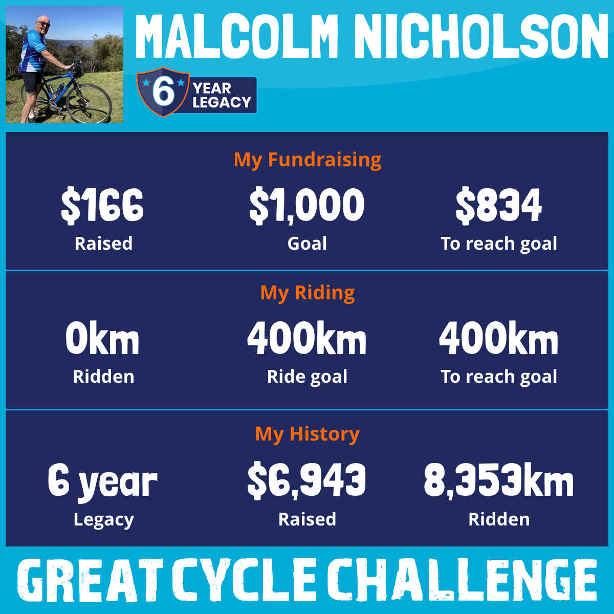 1,203 km Ridden$1,651 Raised2021