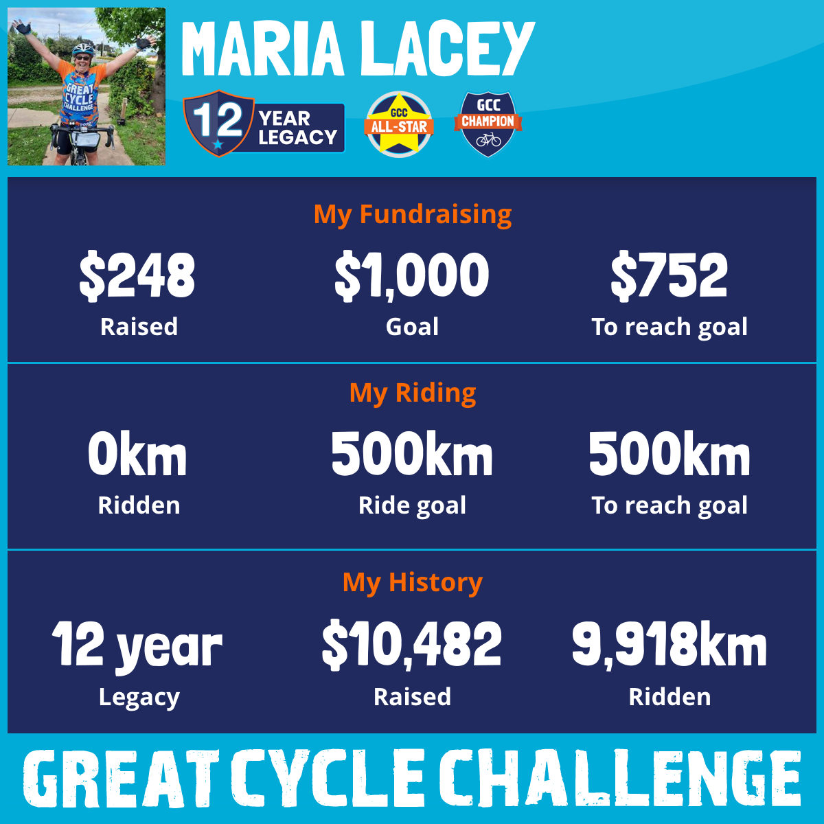 And so I am riding and raising funds to support the Children's Medical Research Institute to continue their work into the prevention, diagnosis, treatment and finding a cure for childhood cancer.