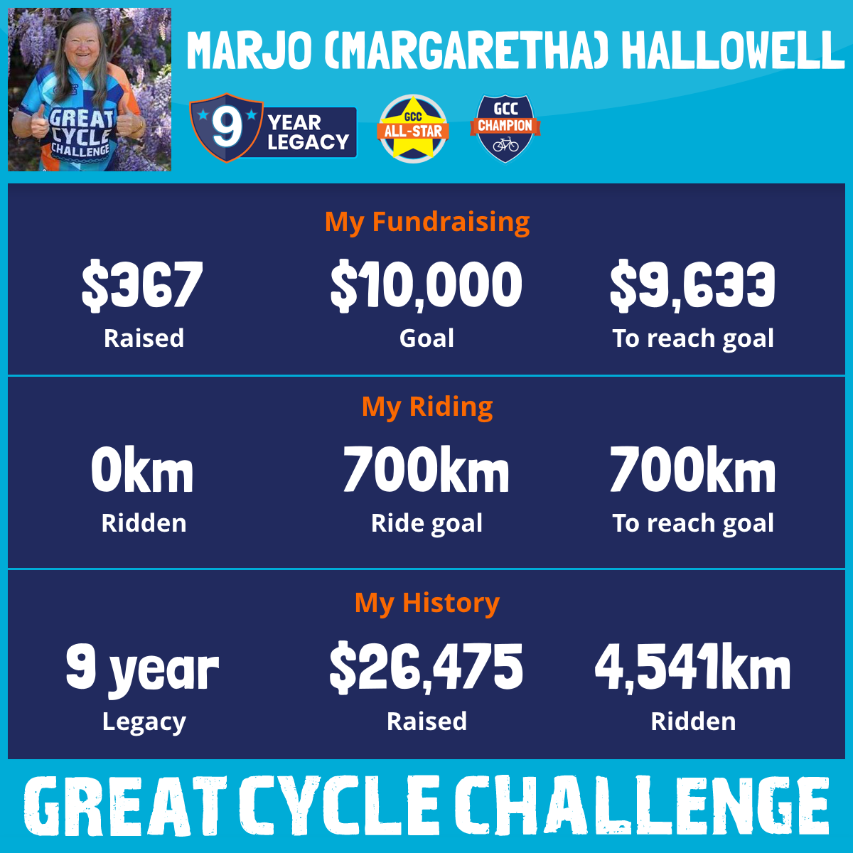I have been riding since 2017 and my grandsons have also joined the Challenge, Edward (12) in 2018, and Doug (10) and Hugh (8) in 2019. Together we ride as team Awesome Kids4kids and have raised over $80,000 since we started being the second highest fundraising team and individually 12th,13th,14th & 15th in 2024. ($40,935.03)