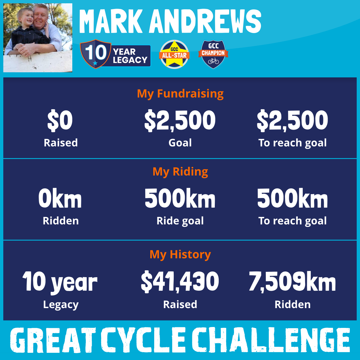 I am riding 500 km in memory of my son, Hamish Andrews. Please sponsor me and support my challenge to fight kids' cancer and save little lives.