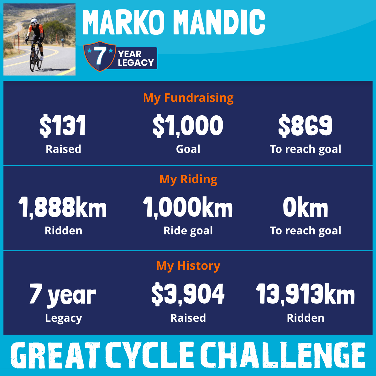 And so I am riding and raising funds to support the Children's Medical Research Institute to continue their work into the prevention, diagnosis, treatment and finding a cure for childhood cancer.