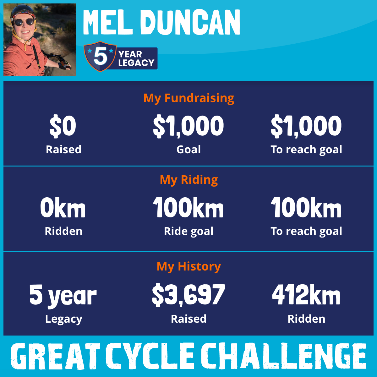 This is my fifth year having a go at the Great Cycle Challenge! 🚴