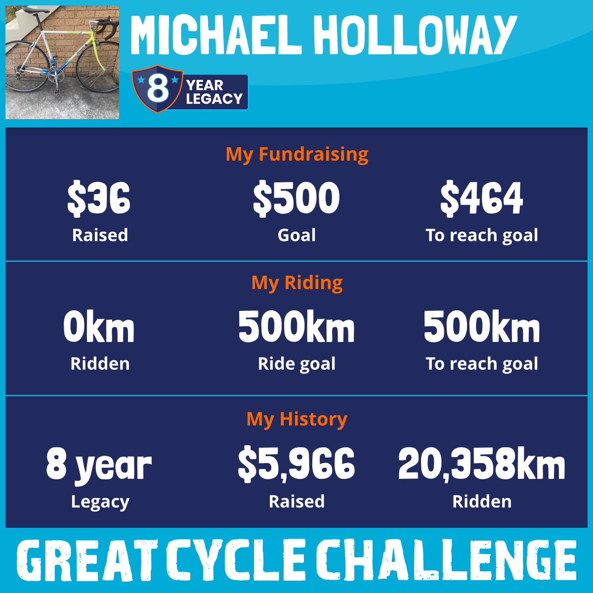 And so I am riding and raising funds to support the Children's Medical Research Institute to continue their work into the prevention, diagnosis, treatment and finding a cure for childhood cancer.