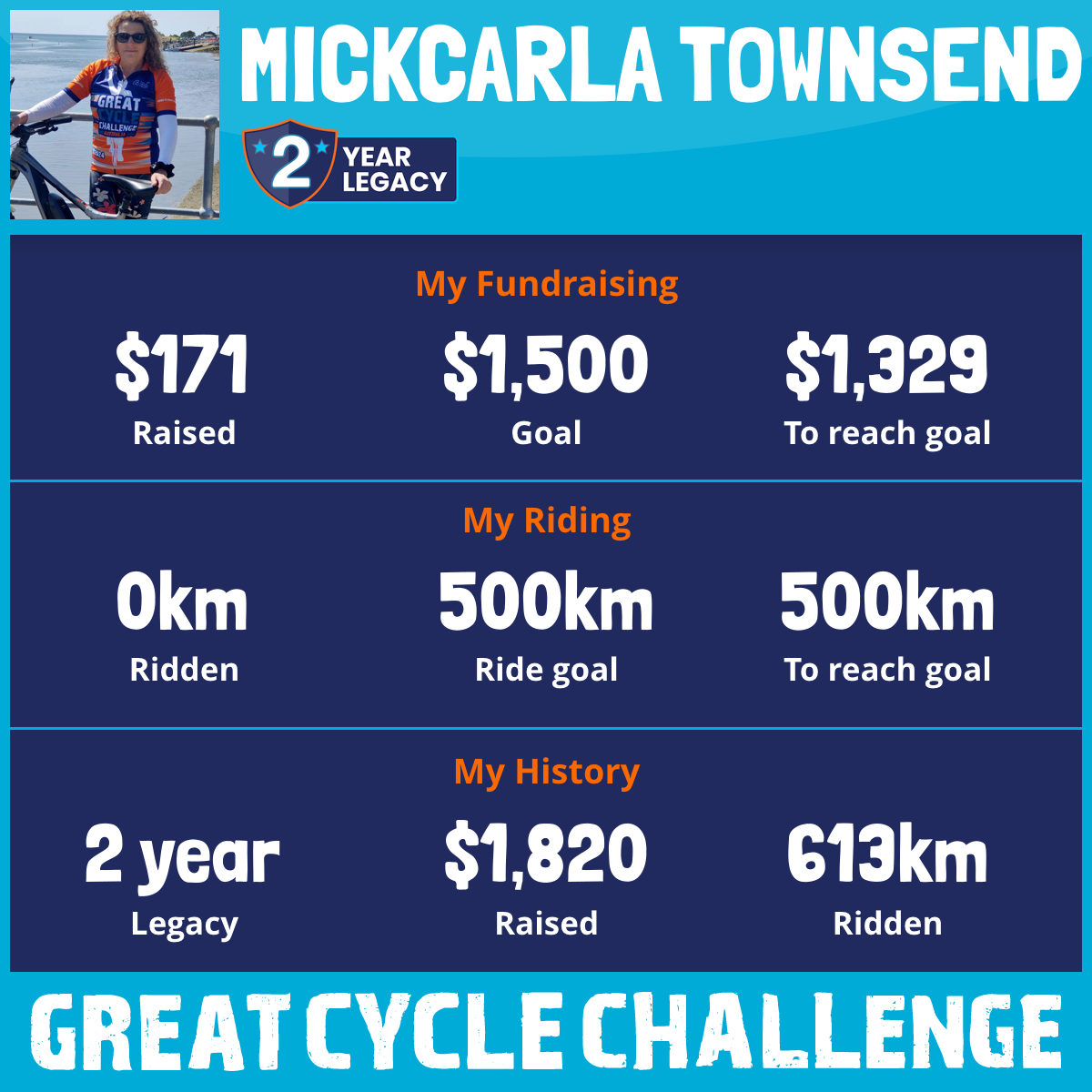 613 km Ridden$1,649 Raised2024