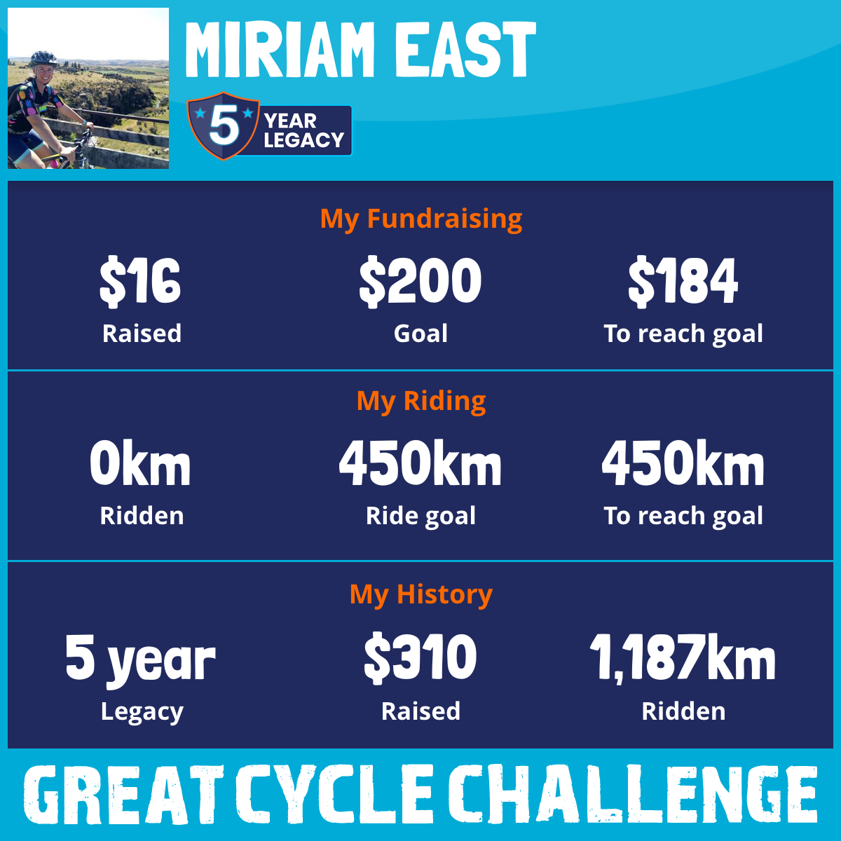 And so I am riding and raising funds to support the Children's Medical Research Institute to continue their work into the prevention, diagnosis, treatment and finding a cure for childhood cancer.