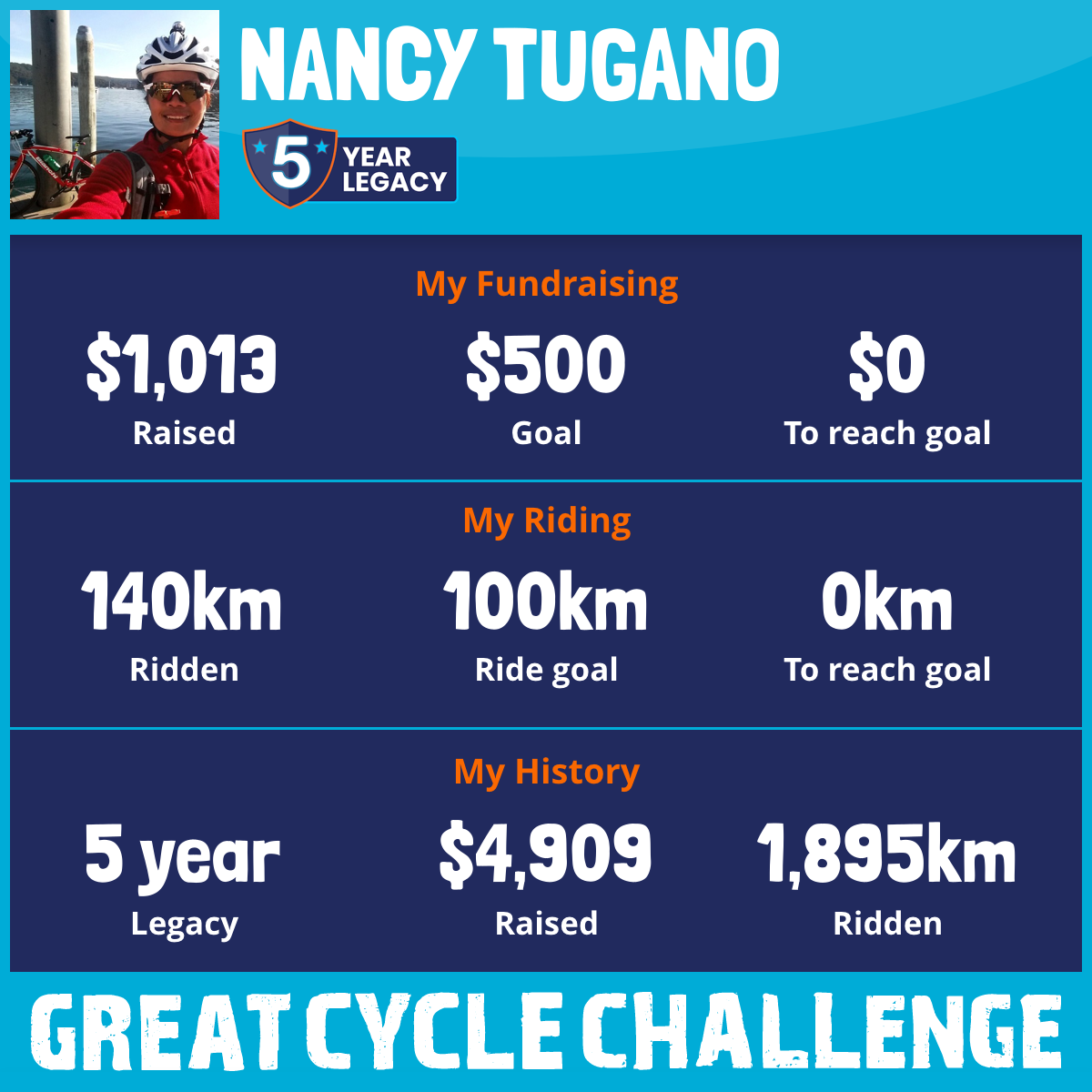 140 km Ridden$1,013 Raised2025