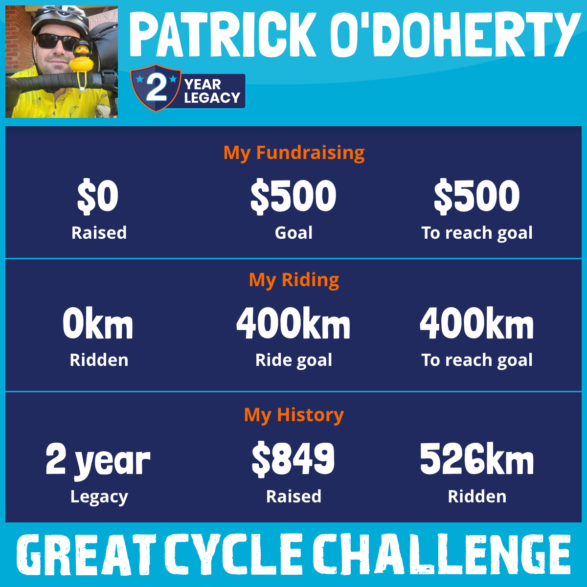I am riding 400 km for Trish McDiarmid. Please sponsor me and support my challenge to fight kids' cancer and save little lives.