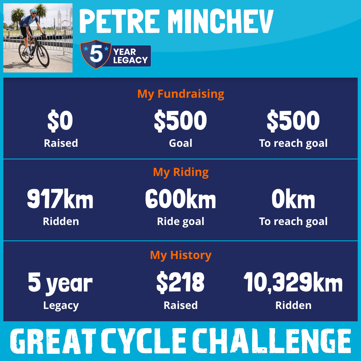 3,139 km Ridden$109 Raised2023