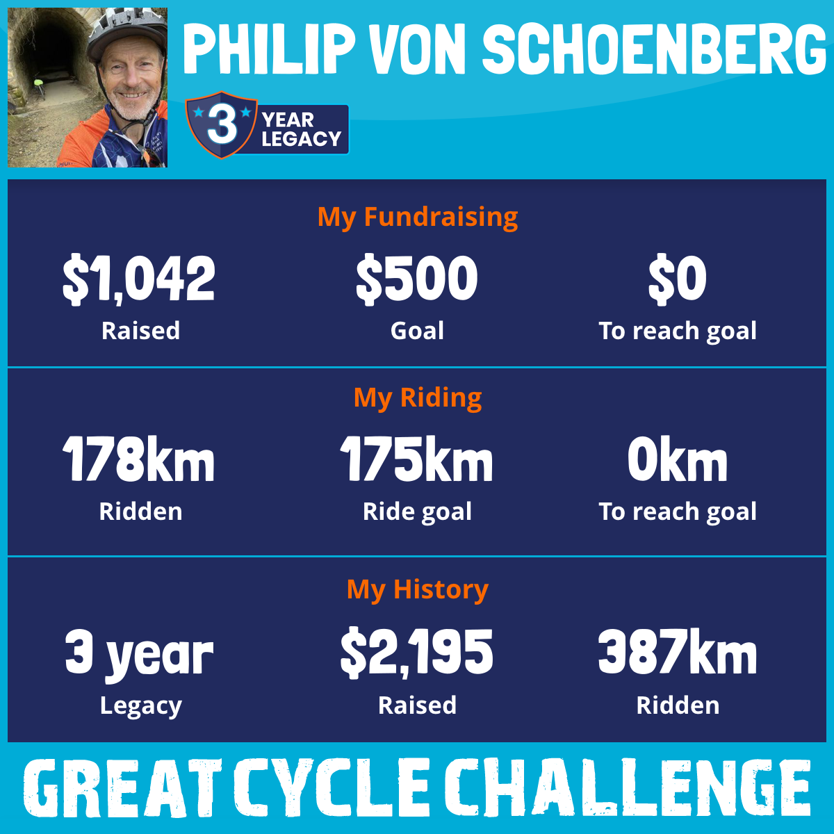 178 km Ridden$1,042 Raised2025