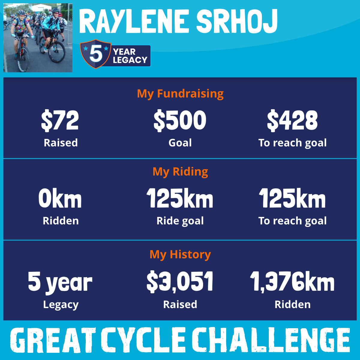 347 km Ridden$1,203 Raised2023
