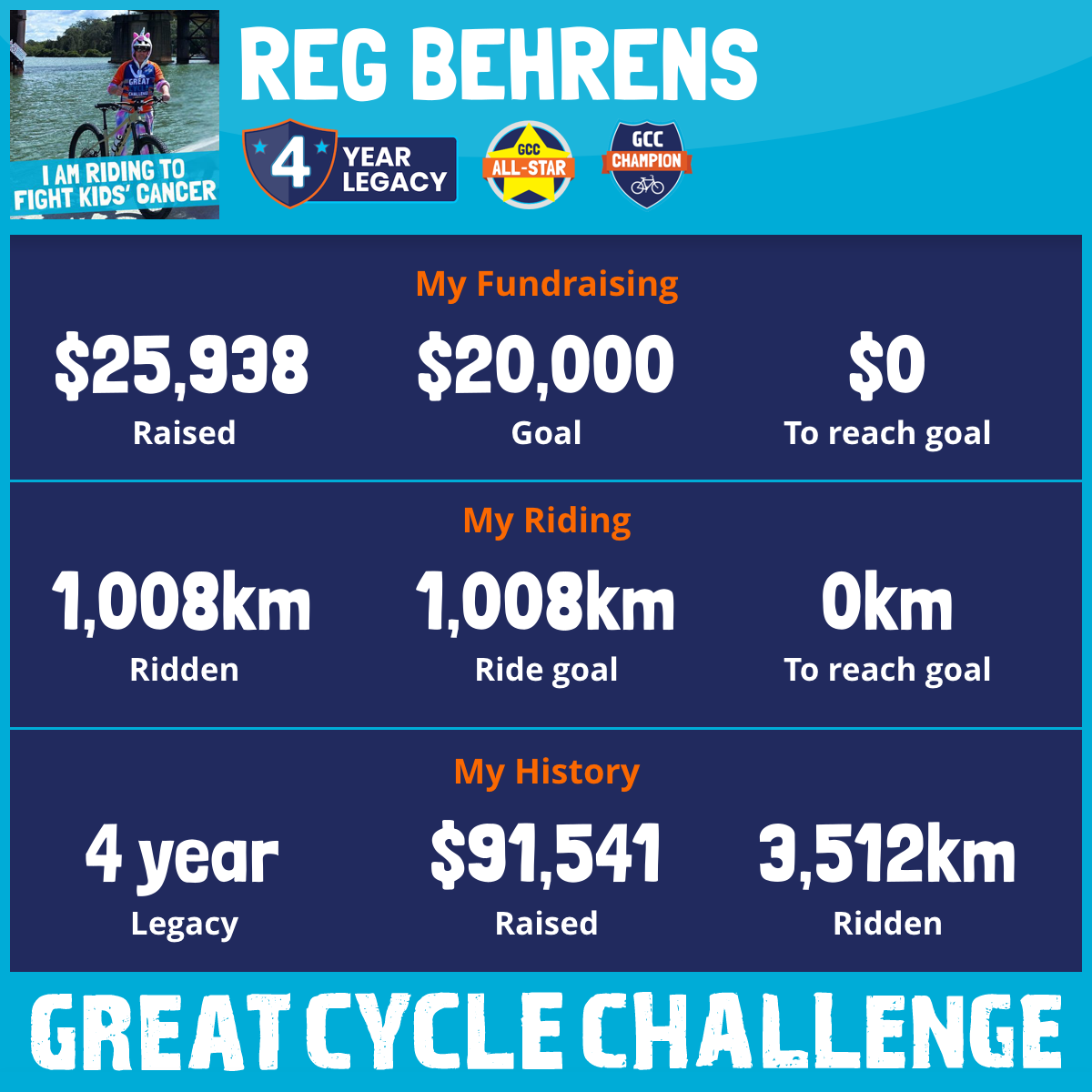 1,008 km Ridden$25,938 Raised2025