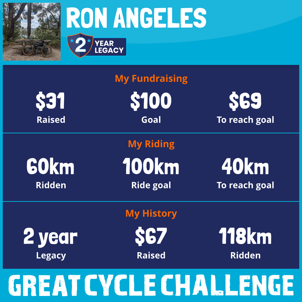 58 km Ridden$36 Raised2023