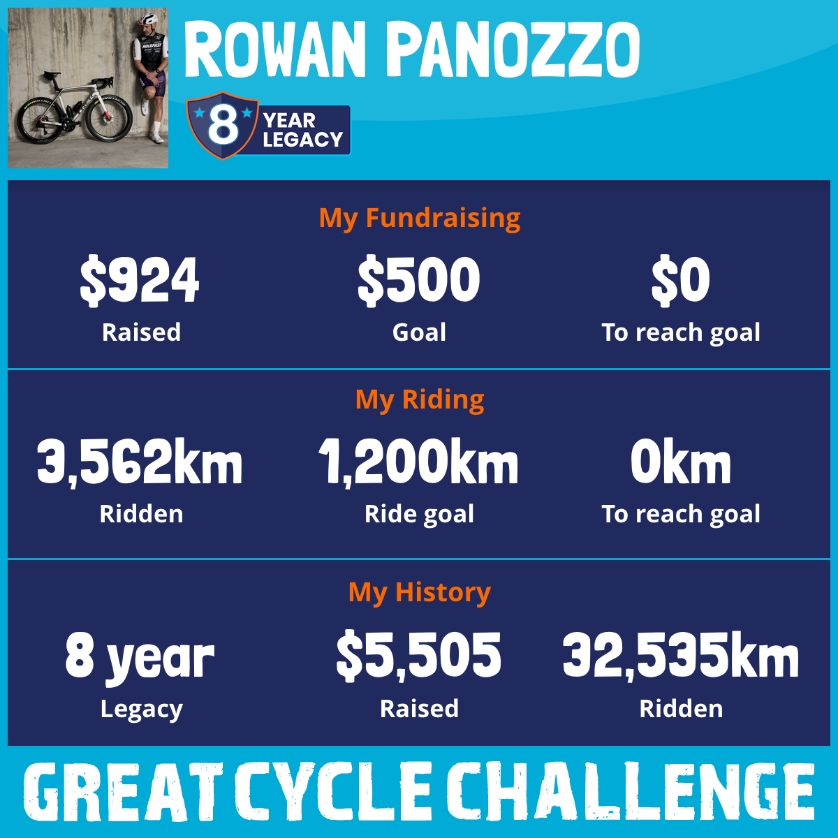 3,461 km Ridden$924 Raised2025