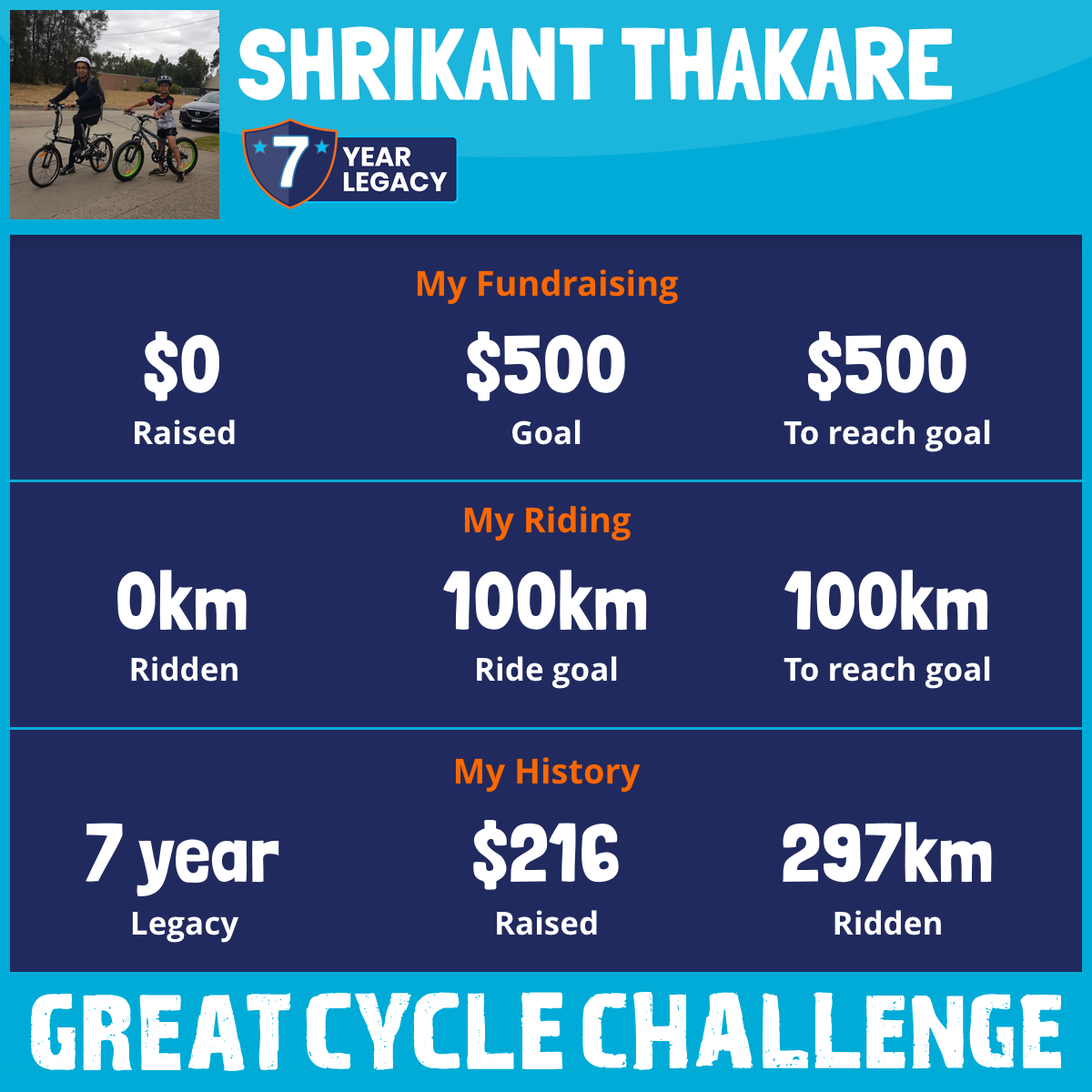 I am riding 100 km in memory of my mum, Anil Thakare and Pushpa Thakare. Please sponsor me and support my challenge to fight kids' cancer and save little lives.