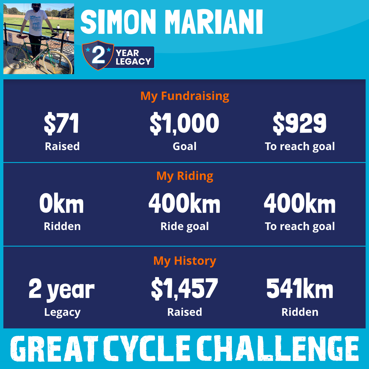 And so I am riding and raising funds to support the Children's Medical Research Institute to continue their work into the prevention, diagnosis, treatment and finding a cure for childhood cancer.