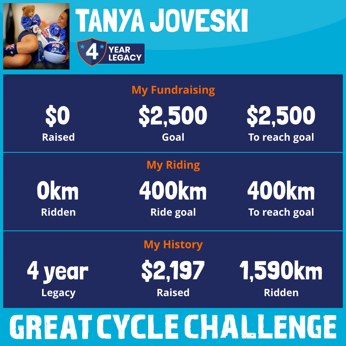 And so I am riding and raising funds to support the Children's Medical Research Institute to continue their work into the prevention, diagnosis, treatment and finding a cure for childhood cancer.